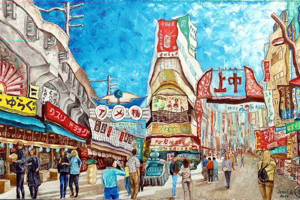 En el centro historico del gigantesto Tokio, sobrevive Ueno, acogiendo al turismo que busca exotismo, parques verdes o museos. Multicolorido entorno y restos de algun edificio de postguerra, mantienen la fama del barrio y atraen curiosos.