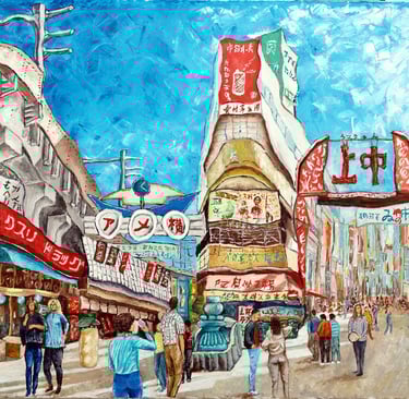 En el centro historico del gigantesto Tokio, sobrevive Ueno, acogiendo al turismo que busca exotismo, parques verdes o museos. Multicolorido entorno y restos de algun edificio de postguerra, mantienen la fama del barrio y atraen curiosos.