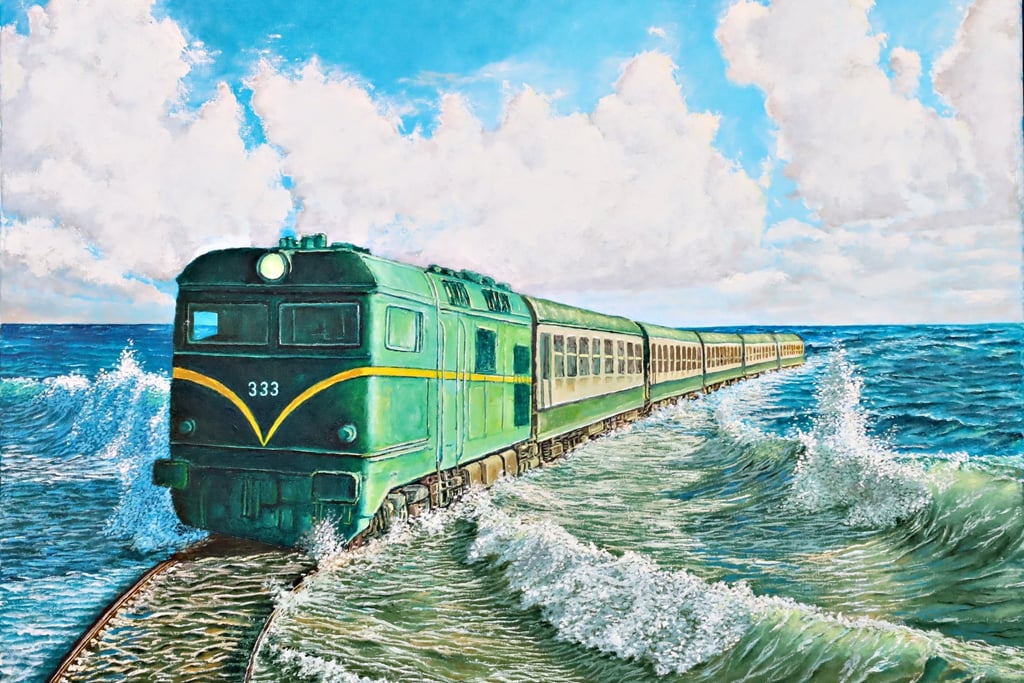 The Transoceanic Express Train departing from Havana, Cuba, and bound for Alcantarilla, Spain, will depart shortly. Direct, non-stop service. This express train features a restaurant car, the La Floridita bar car, the Buenavista car for son and mambo music, a car for the heartbroken, and a car for the lazy. Enjoy your trip with us.