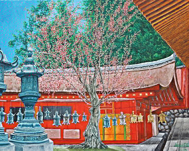 En el casi milenario cerezo en el templo de Nara, cuantas almas duermen en sus flores pendientes de las oraciones enviadas a la divinidad. Anhelos resueltos o ya olvidados tras los siglos. Nunca se perderan pues ya están las luces de las ofrendas destinadas a guiarlas.